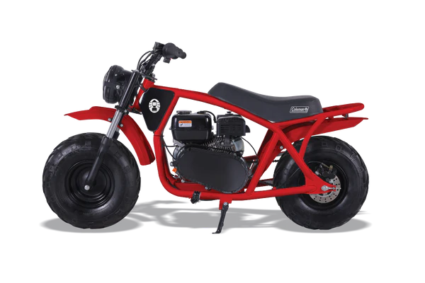 This is the minibike built for serious adventure. The B200 starts with rugged heavy-duty steel-tube construction, adds in a powerful 196cc, 6HP engine, and completes the package with large low-pressure tires and a front hydraulic suspension for a confident, capable ride over any terrain.